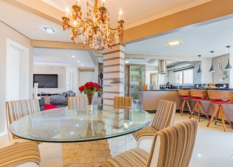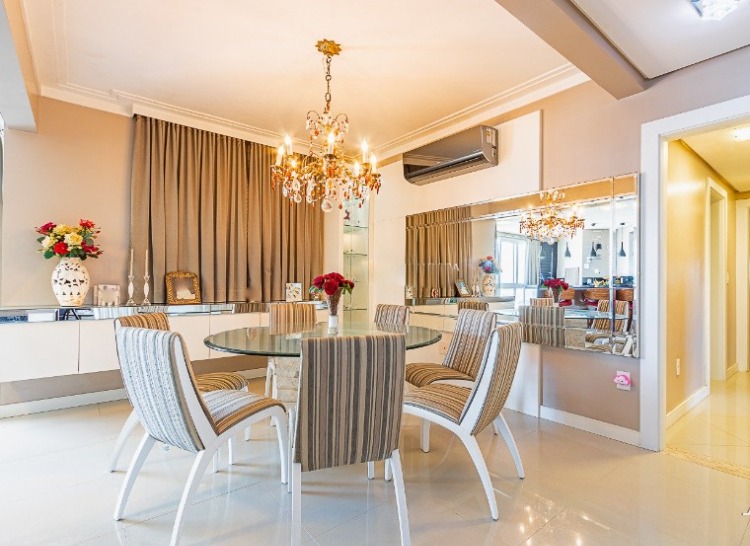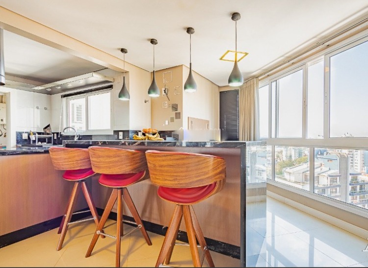 Vende-se apartamento alto padrão localizado no bairro Centro de Canoas, em andar alto com bela vista, 193,36 m² de área útil privativa, um dormitório transformado em living estendido, 3 suítes, sendo 1 master com closet e hidro, piso em porcelanato, permanecem móveis fixos, living amplo, cozinha integrada estilo americana mobiliada, churrasqueira, área de serviços, banheiro social, lavabo, 3 vagas de garagem cobertas individuais, condomínio com infra estrutura, portaria 24 horas, piscina, salão de festas, sala de jogos, sala fitness e elevador.