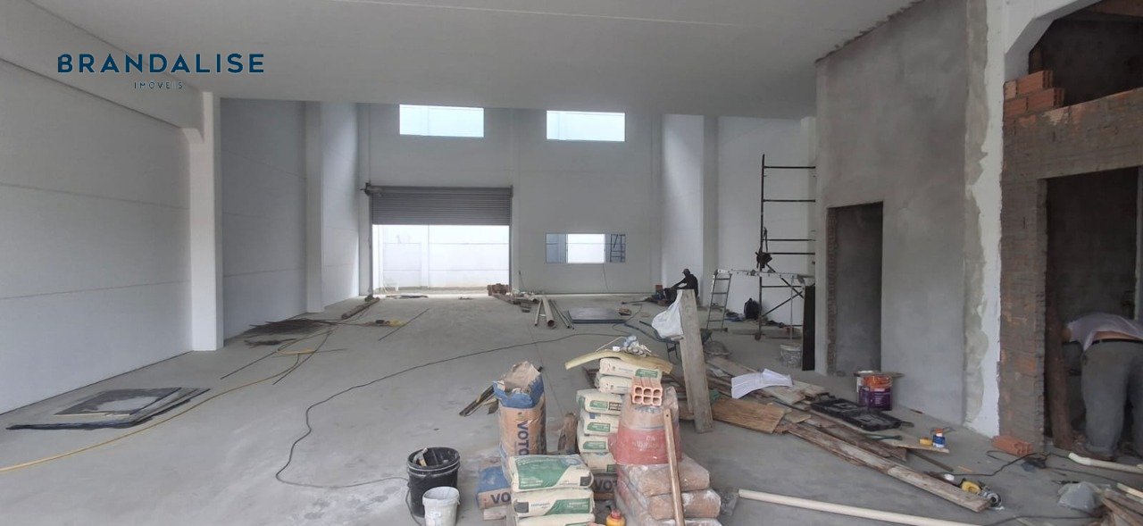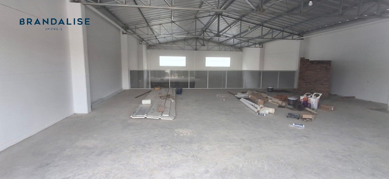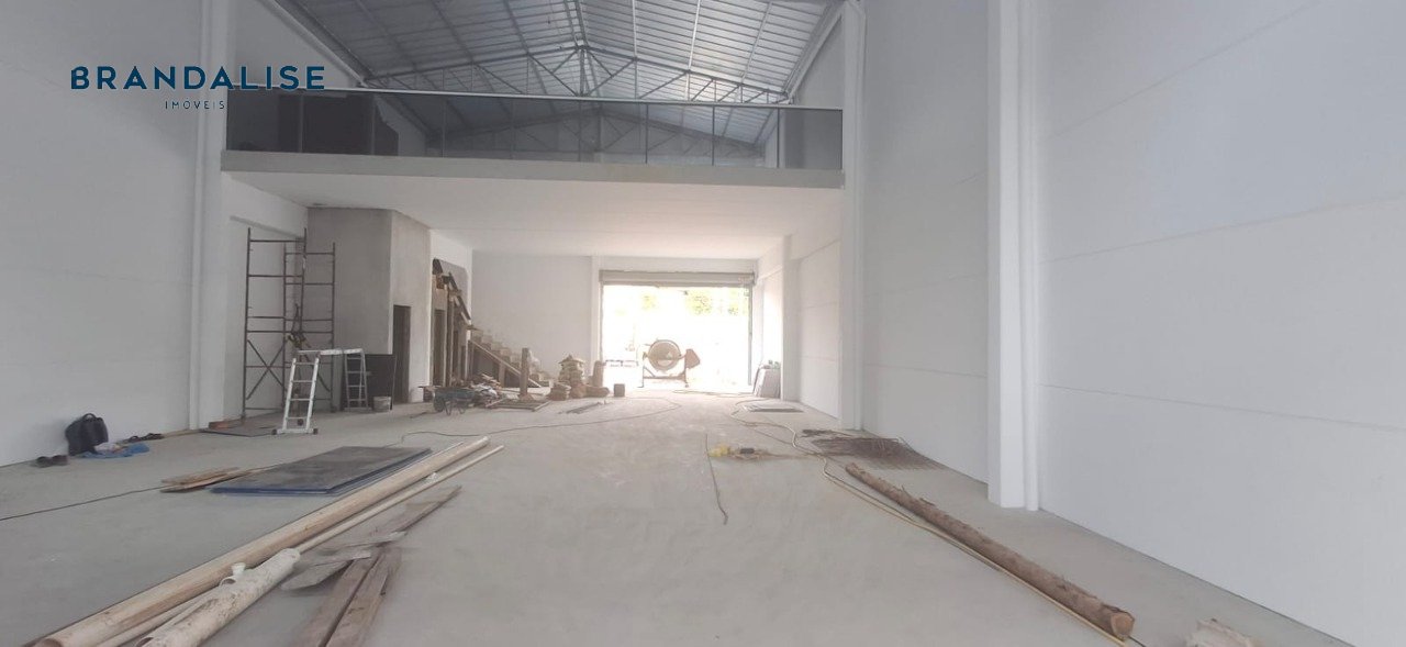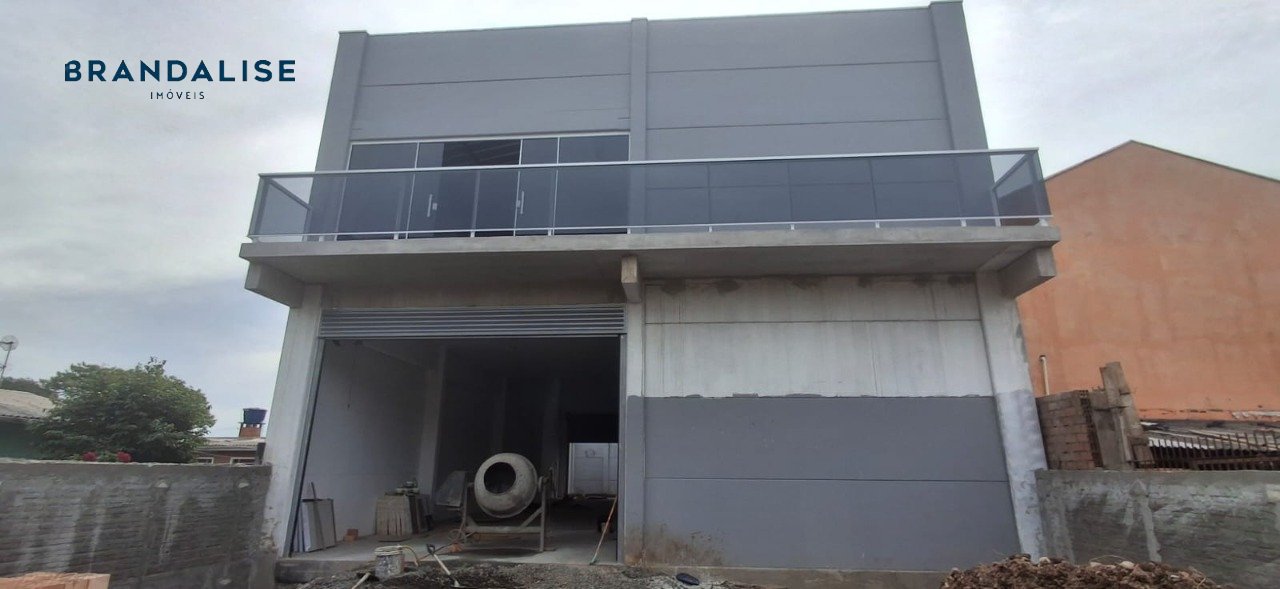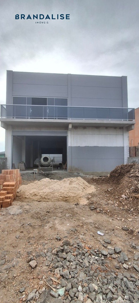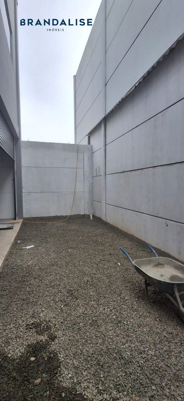 Pavilhão com 230m² no térreo com pátio na frente e nos fundos e 1 banheiro, mezanino com 115m² com sacada e 1 banheiro. Pé direito 7metros, porta cortina automatizada com altura de 4m, piso cimento polido que suporta veículos e caminhões, espera para hidráulica e esgoto no pátio dos fundos.
