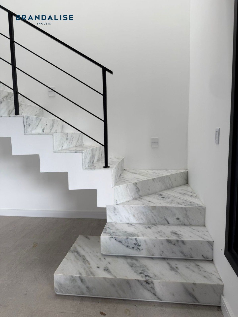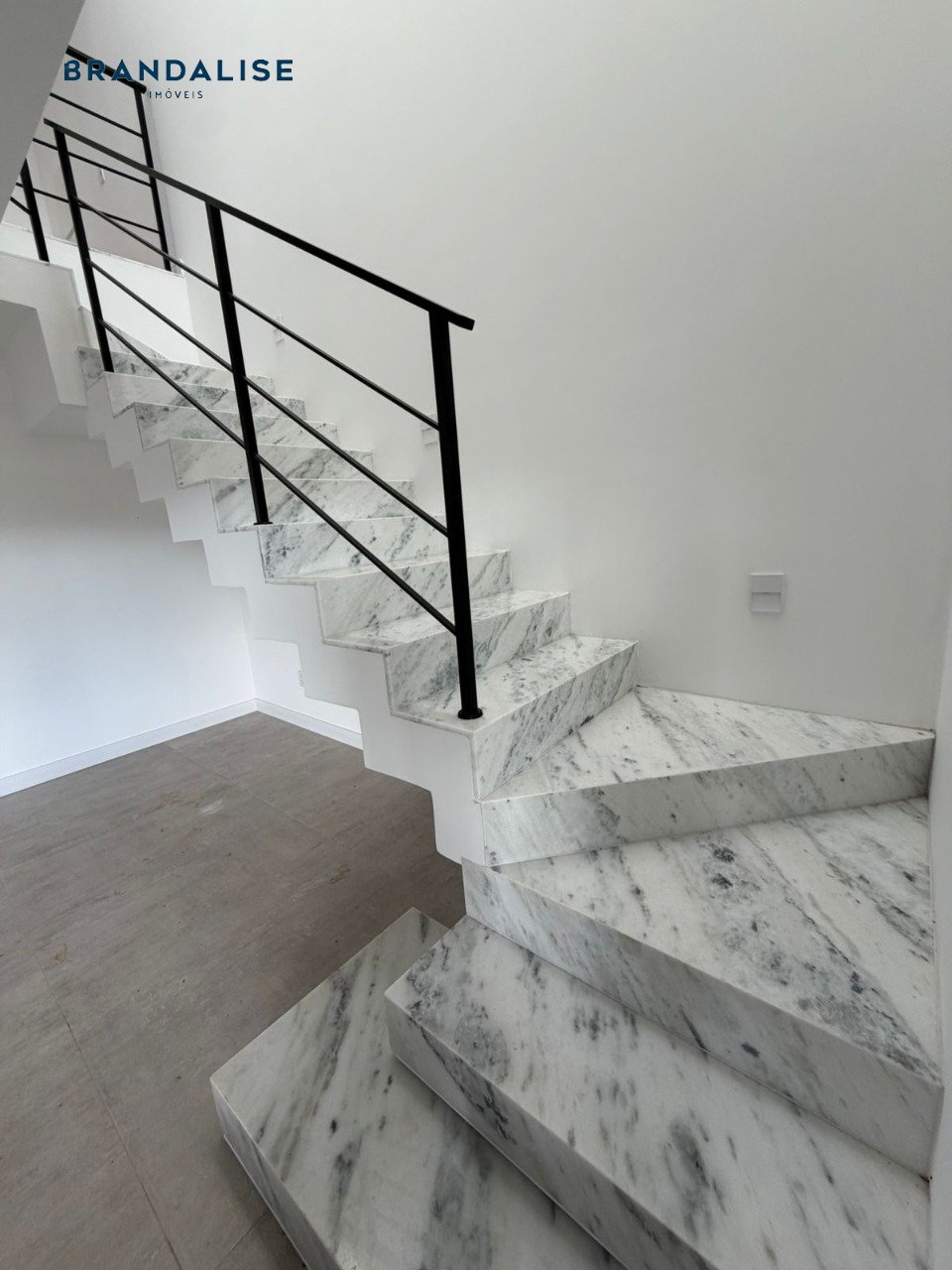 - Escada toda em mármore, com iluminação zenital e de baliza em LED embutido,