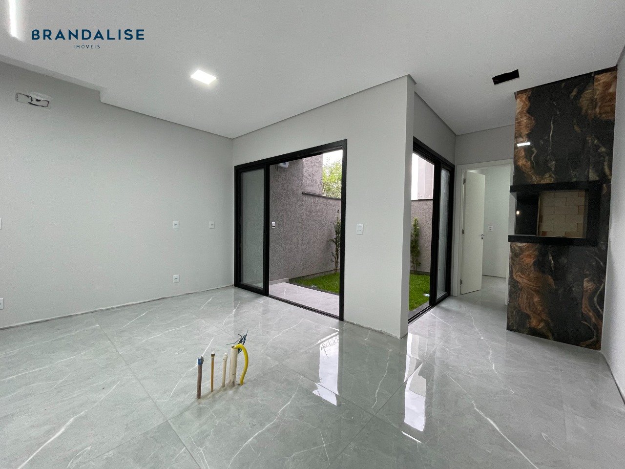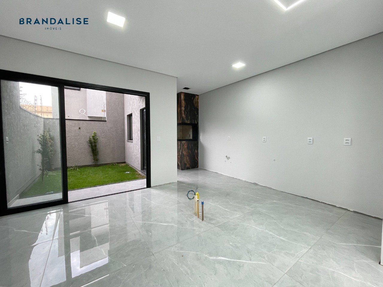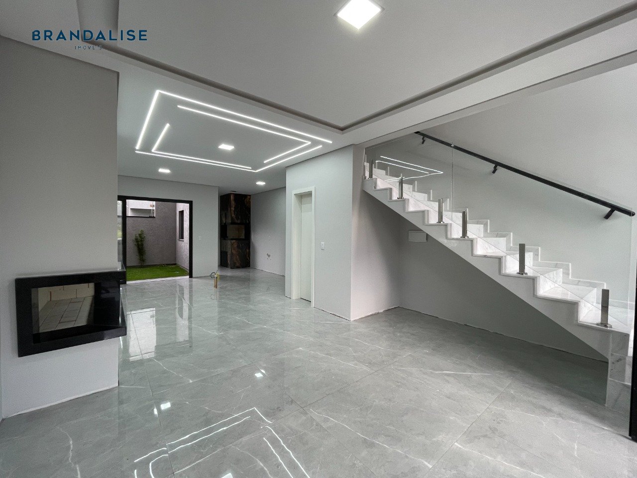 Piso inferior com piso porcelanato e gesso teto