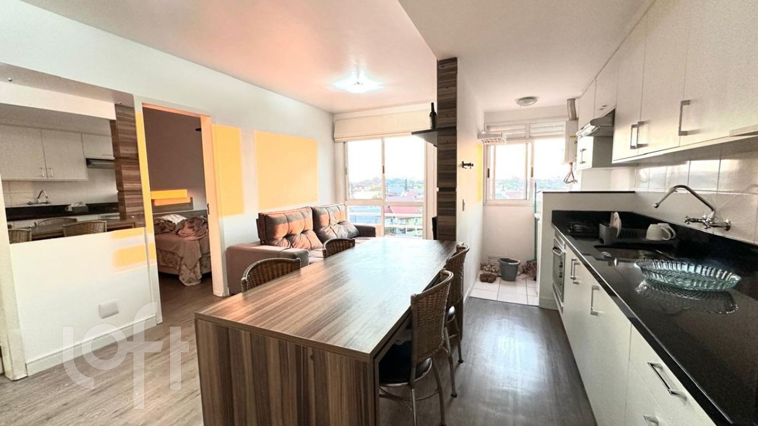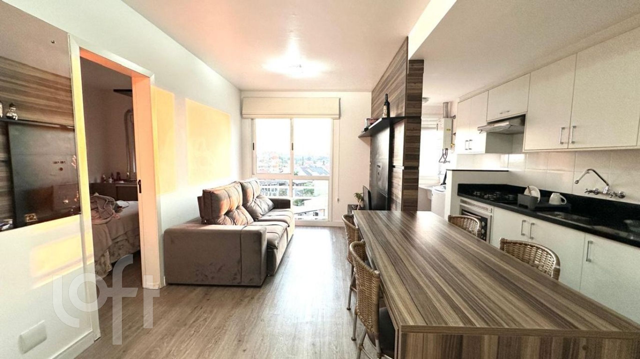 Apartamento a venda mobiliado com 1 quarto, sala com sacada integrada, cozinha, banheiro social, na sala e no dormitório piso laminado, 1 vaga descoberta. Localizado no bairro Igara em Canoas.